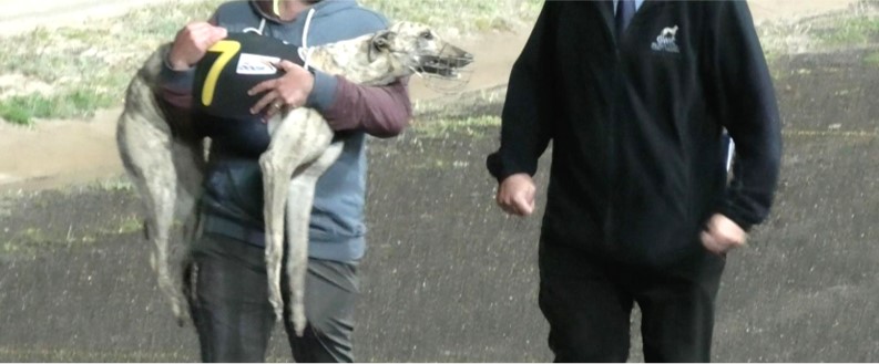 - A trainer hit a greyhound across the eyes because it fell and did not complete the race. “There was no repercussion from the stewards”.