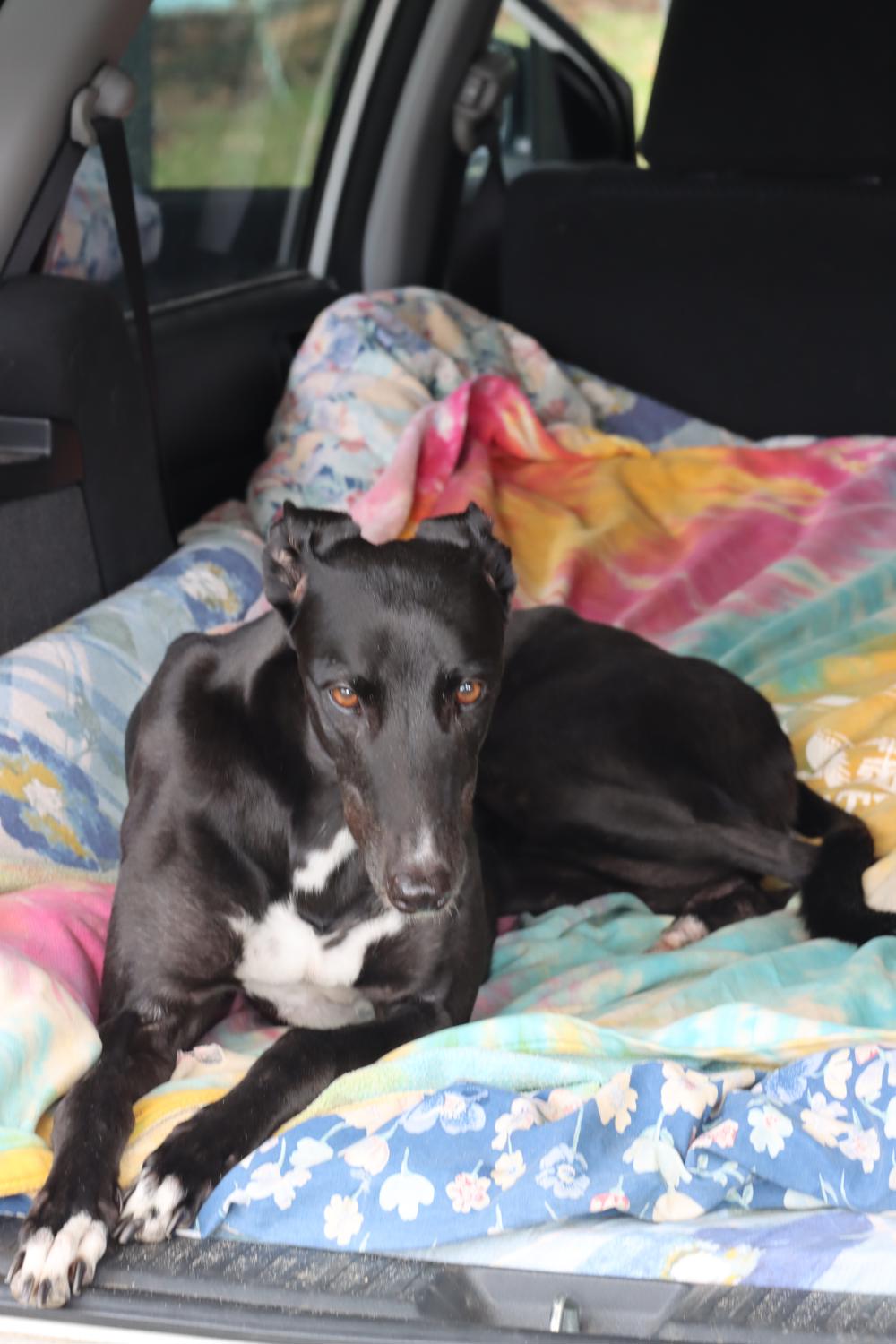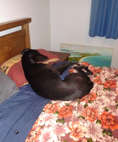 Like a true greyhound, her first action on arriving at our home was to jump onto the couch and promptly fall asleep.