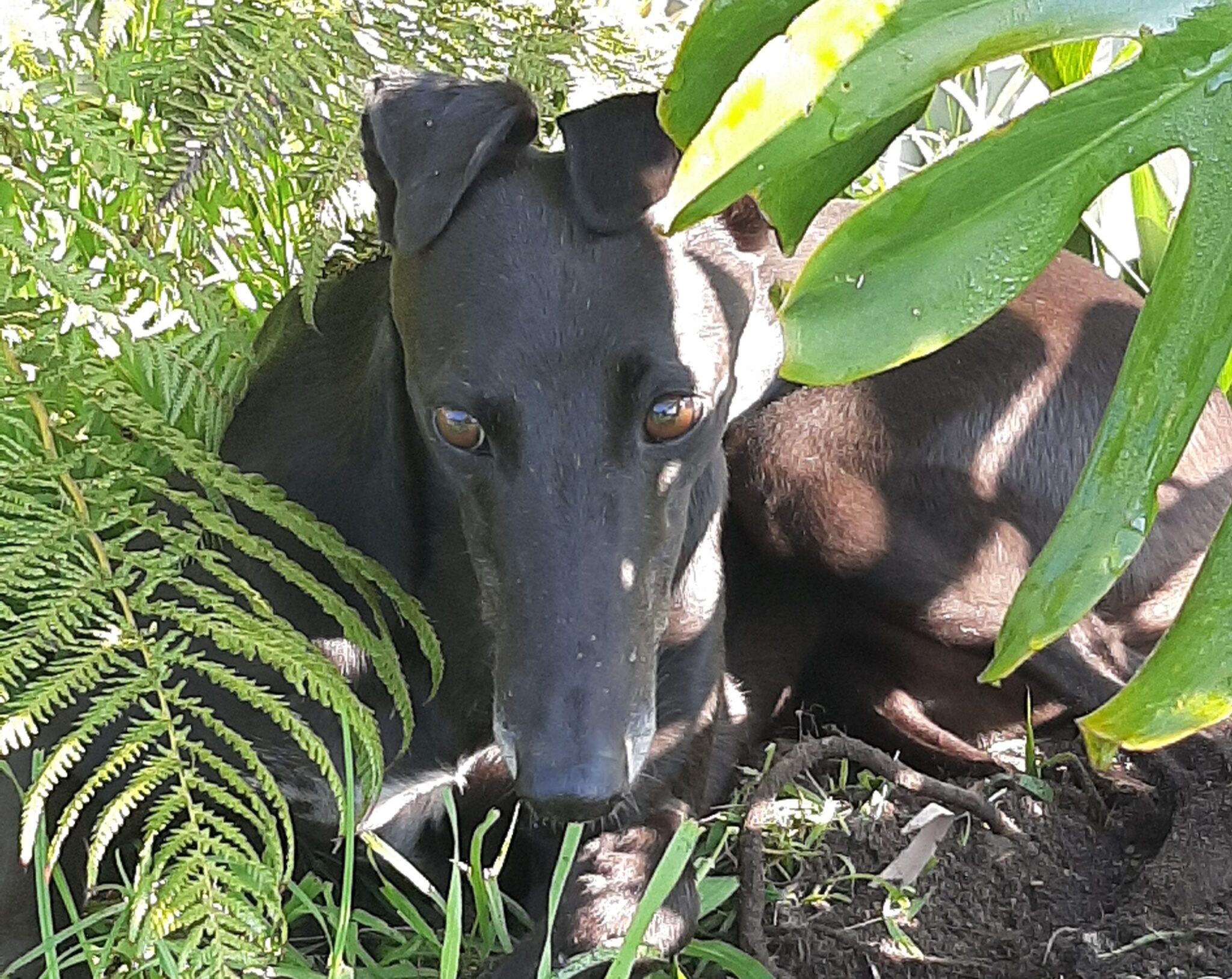 My wife and I adopted Petra in 2020, a beautiful black greyhound from Gumtree Greys. The first time we met her in her foster home, she was hiding in the corner of a bedroom, appearing very afraid. She had only been in foster care for 2½ weeks after being with a trainer in regional Victorian for about 5½ years.